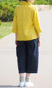 | 岡山県倉敷市児島生まれのレディースデニムブランド“DEEP BLUE”(ディープブルー)。 こちらは、一年を通して穿いていただけるハーフ丈のガーデニングパンツ。大きな二重ポケットと、素朴なネップ生地が特徴です。こなれた雰囲気のワイドシルエット 。濃いダークカラーのワンウォッシュ生地です。 ひざ下丈。 |