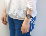 | 漆喰の壁をイメージした、やや凹凸のみられるクラフト感のある文字盤が印象的な手作り腕時計。こちらはオフホワイトを下地にし、ローマ数字文字盤のスタンプを押すことで表現されています。 古典的なローマ数字デザインでありながら、アイデアと個性が光るアイテムになっています。手描きでもない、プリントでもない…、スタンプのやさしい擦れ感やにじみ感が、控えめながらも、 存在感のある時計です。 |