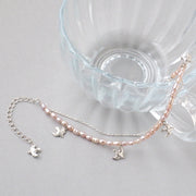 極細の小豆チェーンと小粒の天然ピンクパールの2連ブレスレット