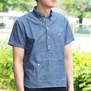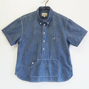 graphzero(グラフゼロ) トラベラーズプルオーバー ボタンダウンシャツ ジャガード インディゴ×ホワイト 半袖 メンズ [GZ-PO-SS-3104-JWH-MENS]