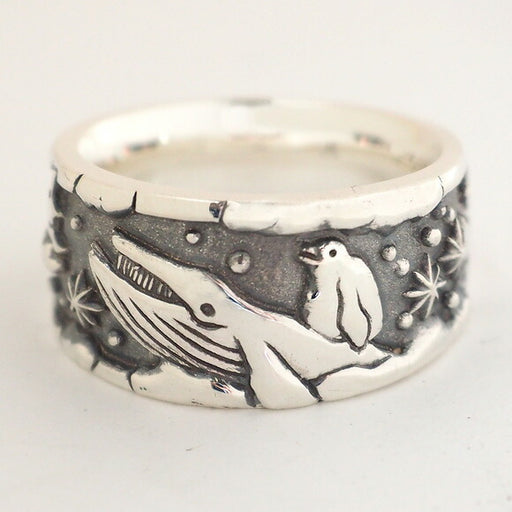 moge(モゲ) シルバーアクセサリー 空を飛ぶ夢 ―クジラとペンギン― シルバーリング 11mm [mo-R-020]