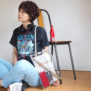 中身をファーアイテムや暗めのトーンのもので統一すれば冬でもお使いいただけます。重くなりがちな秋冬のコーデにクリア素材を足すことで抜け感がでます。