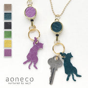 | ネコ好きさんから大好評の「aoneco(アオネコ)」から便利なリールキーホルダーが登場!! 輪っかにぶら下がるようにaonecoの本革チャームがついています。 |