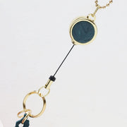 | 便利な伸縮リール。 鍵やパスケースをつけてバッグに取り付ければ、すぐに取り出したい時にサッと見つけられる! |