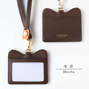 スタッフ証やセキュリティカードなど、いつもの必需品をかわいく持てるIDカードケースです。落ち着いた本革に、さりげなくあしらわれたネコ耳のフォルムが上品なアクセント。