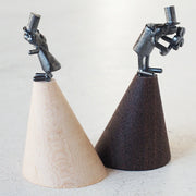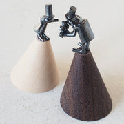 | ブロンズ造形作家・コイズミタダシさんが手がける小さなオブジェやアクセサリーは、シルクハットをかぶったコビトさんたちが主人公。ピアノを弾いたり、自転車をこいだり…生き生きとしたコビトさんの姿に、思わず笑みがこぼれます。 コイズミタダシさんが手がける作品は、1点1点、蝋で原型をつくって型を取り、ブロンズを鋳造して仕上げているため、同じ作品であっても全く同じものはありません。哀愁を感じたり、笑っているように見えたりと、とても表情豊か。 また、それぞれの作品には、コイズミさんのメッセージも添えられていて、そのさりげない優しい言葉にも心が温まります。デスクの上やベッドのそばなど、よく目にするところに置けば、毎日心を安らげてくれます。 楽しい時、うれしい時、そして悲しい時にも、そばでさりげなく寄り添って、いつまでも語りかけてくれる作品たちです。 |