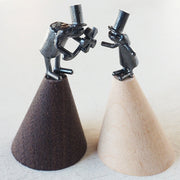 | 大切な人にお花をプレゼントしている、愛らしいコビトさんのリングスタンド。 不器用だけど、大切に想う気持ちを伝えたい、そんなキュンとするシーンを切り取った、心がほっこりする作品です。2人のリングを一緒に置ける優しい雰囲気のアイテムです。 シンプルな造形ですが、手作りならではの温かみを感じることができます。気持ちが落ち込んでいるときに眺めて、癒されるのも良いですね。 |