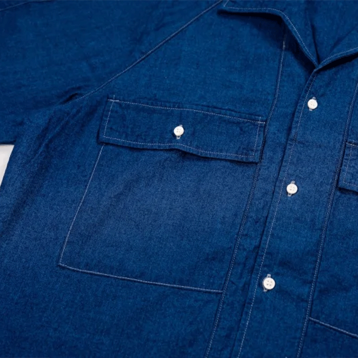 粋なイタリアンカラーに胸ポケットが前立てに挟み込んで縫われている特徴的なつくり。