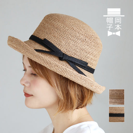 岡本帽子(おかもとぼうし) 和紙 ペーパー 鍵編み リボン付き 麦わら帽子 レディース [25...