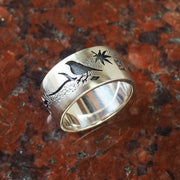 リング幅は10mmと存在感があり、コーディネートのアクセントにぴったり!和装と洋装どちらでも合わせやすい、大人可愛いリングに仕上がっています。