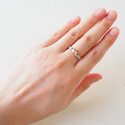 リング幅は約2.7mmとやや細目で、上品で優しい雰囲気をお楽しみいただけます。シルバー&ゴールドカラーですので、カジュアルスタイルにはもちろん、キレイめスタイルの外しアイテムとしてもオススメです! 男女問わず人気のリングです。
