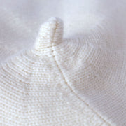 リブ部分を織り込んで、頭のてっぺんに乗せるようにかぶれば優しい雰囲気に
