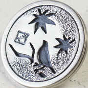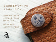 シルバー製のコンチョで、紅葉と文鳥がモチーフ。木にとまった文鳥と舞い散る落ち葉が、いかにも日本らしい情景を表しています。