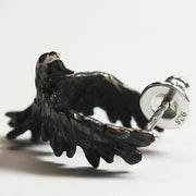 耳にしがみつくようなカラスがとってもキュート!しかしクワっと開いた口ばしや、無骨かつ艶やかな翼の質感などには迫力が込められ、ダークな印象もあり…。男女ともにお使いいただけるデザインです♪