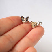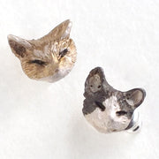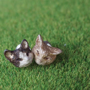 | 茶トラと白黒ハチワレねこちゃんの小さな1ペアピアス 仲良くじゃれあったり眠ったり…そんな表情がうかかえます。 |