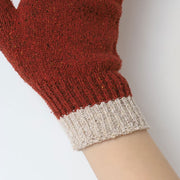 各色にネップ感のあるカラー糸が配色になっているので、見た目に楽しいエコシルクで編み立てたシンプルなグローブ。