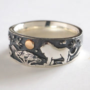 moge(モゲ) 手作りシルバーアクセサリー 月の絆 -ライオン- シルバーリング 8mm [mo-R-061]