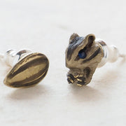 シマリスと、シマリスの大好物のヒマワリの種とがペアになったアシンメトリーのピアスです。