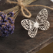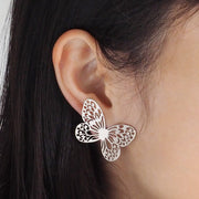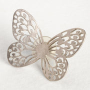 耳元にそっととまっているような蝶は、丸みのある可愛らしいシルエット。シルバー素材によって大人っぽい印象もプラスされています。蝶の翅は透かし彫りで丁寧に表現されています。