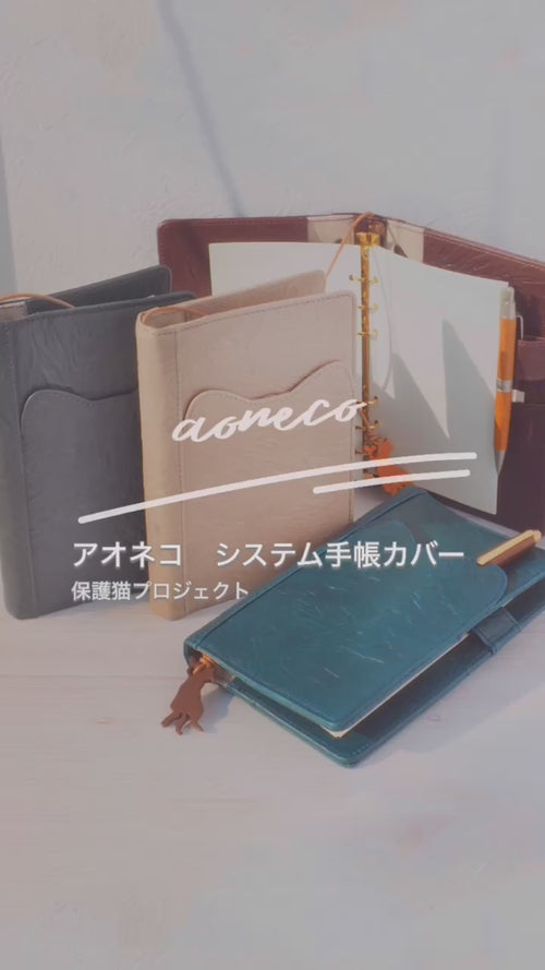 aoneco(アオネコ) 本革 システム手帳カバー [an014] 革製品を手がけるwajiさんの保護猫プロジェクト スケジュール帳 日記帳 バイブルサイズ B6 猫 牛革 レザー
