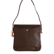 遊び心を感じさせつつも、大人の装いにもしっくりなじむ、上品なレザーショルダーバッグです。