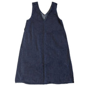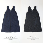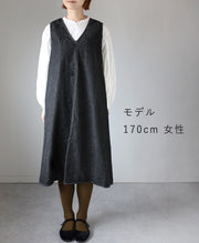 | ほどよい厚みで扱いやすい、8ozムラデニム素材のジャンパースカート。 Vネックのすっきり感と、日常に取り入れやすいデザインが魅力です。 |