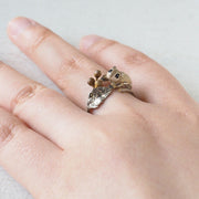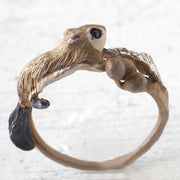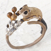 スラリと繊細な茎とその葉がリング状になった、モモンガと木の実のかわいい指輪です。