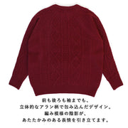 秋冬らしい立体的なアラン柄を、前身頃・後身頃、そして袖まで贅沢にあしらわれています。
