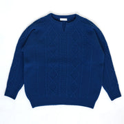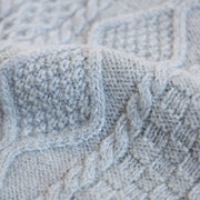 アラン柄はアイルランドの漁師セーターをルーツにもつ伝統の編みダイヤ柄は「豊かさ」や「成功」を、縄柄(ケーブル柄)は「絆」や「強さ」を、そしてハニカム柄は「勤勉」や「幸運」を象徴するといわれる伝統の模様。それぞれの柄が生み出す凹凸の陰影が、あたたかみのある表情をつくり出します。