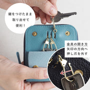 ![]() スマートキーを1つずつ、革で仕切られたポケットに収納できるので、 スマートキー同士がぶつかって傷つくことはありません。 その他のポケットには、カード類・紙幣などが収納可能。 「マチ」によって程よく開くので、中身を取り出しやすいのも魅力です。 ![]() 3本の鍵を平たく並ベて収納することで、厚みが抑えられています。 適度な膨らみと、鍵が動かないようホールド感を持たす為に、 絶妙な長さに切り込みが調整されています。 ※金具の仕様が異なる場合がございます。 ![]() 忘れ物をした!電話が鳴っている!お手洗いに行きたい! 鍵が必要なときは、急いでいることが多いです。 すぐに取り出せるように、ファスナーの外側にポケットが作られています。 ※金具の仕様が異なる場合がございます。 ![]() 鍵を入れる膨らみを生みながら、表面が凸凹しない構造を 何度も試行錯誤した結果、革の幅を両サイド5mmずつ広げることに。 外側の一枚革の半分だけ、両サイドをナナメに裁断。 これを経験値で実現できるのは、長年の職人技。 ![]() 穴の位置が低くても、革紐が長くても、スマートキーがこぼれ落ちてしまいます。 ミリ単位で調整を重ねて、今の「高さ」と「長さ」に辿り着きました。 ![]() 3本の指でスマートキーを持って人差し指を伸ばせば、 丁度スナップボタンに引っ掛けることができ、ほんの1秒で取り外しができます。 ディーラーで車を預ける時など、スマートキーだけを取り外したいシーンで役立ちます。 鍵の付け替えも、面倒さを感じません。 ![]() 電磁波が強いコインパーキングなど、スマートキーを取り出さないと反応しないような 場所でも、ファスナーを少し開ければすぐに取り出してボタンを押すことができます。 ![]() 縫製コストを極限まで抑え、使う革の量も減っています。 「良いもの」だからこそ、多くの方に使っていただける価格を目指されています。 ![]() 革はシュリンク牛革を使用。ふわふわの柔らかい手ざわりで、手にしっとり馴染みます。 ファスナーはYKK製で開閉もスムーズに。職人歴30年の熟練技による組立て技術と 美しい縫製が生み出す安心感と堅牢度。 ![]() 伝統的な技法で一つ一つ丁寧に作られた貼り箱に入れてお届けします。 こちらは、明治7年創業、京都・老舗の箱屋さんに別注されたもの。 新生活や記念日などの、プレゼントにもオススメです。