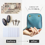 ![]() 約10cm角の正方形で、ポケットにぴったり入る 丁度いいサイズ感。(カラー:すんずり川床/青緑) ![]() よく使うICカードを入れれば、電車通勤や支払いが、 これ一つでスムーズに対応できます。(カラー:薄暮の慕ふ/紺) ※同機能のICカード同士による干渉にはご注意ください。