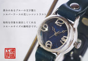 | 渡辺工房の渡辺正明さんは、東京の下町にかまえた工房にて、ひとつひとつ手作りで腕時計を制作されている腕時計作家さん。手作りならではの味わい深い表情、温かみがあふれた腕時計作品を多く手がけられています。 シンプルなデザインと上質さ、手づくりならではの温かみと味わいを兼ね備えたアナログ腕時計。3・6・9・12の数字は、ケース内側の側面に溶接され、文字盤から浮かび上がっています。他の時計ではなかなかみられない立体構造で、シンプルなデザインながらも際立つ個性を放っています。 文字盤のブルーが、透明感のあるクリアな雰囲気に仕上がっています ベルトの素材には質感の良い牛革を使用し、厚さは約3.5mmと存在感抜群。よくある腕時計のレザーベルトに比べて格段の耐久性を備え、上質さもただよっています。同価格帯の量産品の腕時計でも、ここまでのクオリティと存在感のあるレザーベルトを使用しているものは数少ないと思います。 クールなシルバーと、手作りらしい味ある文字盤…その絶妙なバランスによって、カジュアルスタイルやきちんとスタイルなど、様々なコーディネートに合わせやい腕時計へと仕上がっています。 華奢な印象と知的な女性らしさを演出しています。 コーディネートをググッと締めるアクセントとなってくれそうです。 ご自分用としてはもちろん、誕生日、クリスマス、バレンタイン、ホワイトデー、バースデーなどのギフト・プレゼントにもおすすめ。ラッピングをご希望の方は、ご注文時の備考欄(自由記入欄)にてお伝え下さいませ。 |