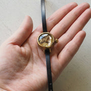 スラリとシンプルなベルトに、まるっこい時計本体が、まるでアクセサリーのよう。