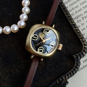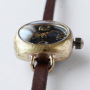 裏蓋はステンレス。ころんとした可愛らしいサイズ感。| ベルトの素材には質感の良いタンニン鞣しの牛革を使用。 よくある腕時計のレザーベルトに比べて格段の耐久性と上質さを持っています |