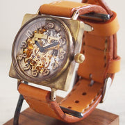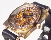 渡辺工房 手作り腕時計 自動巻 裏スケルトン スクエア 立体数字インデックス ジャンボブラス [NW-BAM027]