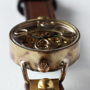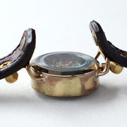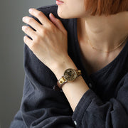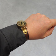 真鍮ケースは使用するほど経年変化が進んでいくので、風合いの変化もお楽しみいただけます。パッと目を惹くメカニカルなデザインが、コーディネートのアクセントに。スチームパンクがお好きな方にもおすすめです。