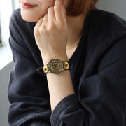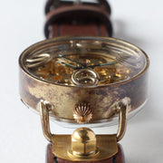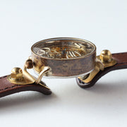 真鍮ケースは使用するほど経年変化が進んでいくので、風合いの変化もお楽しみいただけます。パッと目を惹くメカニカルなデザインが、コーディネートのアクセントに。スチームパンクがお好きな方にもおすすめです。