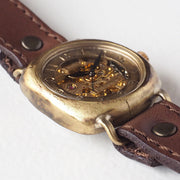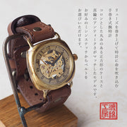 | 素材・加工 | 【ムーブメント】機械式(手巻き式)・3針 【ケース】真鍮(裏ぶたはステンレス) 【ベルト】本革(タンニン鞣し牛革) 【風防】ガラス |