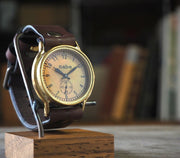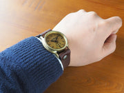 ![]() 静かに時を刻むスモールセコンド仕様 ![]() あたたかみのある落ち着いた印象の真鍮ケースです ![]() 裏蓋はステンレスです。 ![]() 男女問わずお使いいただけるサイズ感です