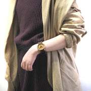 ![]() シンプルきれいめが好き。でも手作り感も欲しい。そんな欲張りなあなたに (写真のベルトカラーは「ブラウン」) ![]() 文字盤のわずかな色ムラが味わい深い