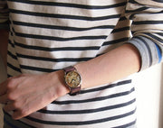 | 渡辺工房の渡辺正明さんは、東京の下町にかまえた工房にて、ひとつひとつ手作りで腕時計を制作されている腕時計作家さん。手作りならではの味わい深い表情、温かみがあふれた腕時計作品を多く手がけられています。 ケースと文字盤、すべてにおいて真鍮素材をメインに使用した、手作りのあたたかみと真鍮の素朴さを感じることのできる、手作り腕時計。 シンプルなデザインと上質さ、手づくりならではの温かみと味わいを兼ね備えた腕時計です。 文字盤中央のフラットな部分には、放射状のラインが入っていることによって全体のバランスが取れ、スタイリッシュさを表現。スモールセコンドは、あえて目盛りを入れず、さらっと表現されているところがまた良いです。 あえて少しのゆがみや色ムラを取り入れることで、既製品には無い、世界に一つの表情を持つ時計に仕上がっているのではないでしょうか。 味わいある真鍮と、手作りらしい味ある文字盤…その絶妙なバランスによって、カジュアルスタイルやきちんとスタイルなど、様々なコーディネートに合わせやい腕時計へと仕上がっています。 ジャンボブラスは、渡辺工房さんの腕時計の中でも大きめで、存在感抜群ですが、こちらのモデルは男女兼用サイズなのでユニセックスとしてカップルで楽しむのもOK。コーディネートをググッと締めるアクセントとなってくれそうです。 ベルトの素材には質感の良い牛革を使用し、厚さは約4mmと存在感抜群!よくある腕時計のレザーベルトに比べて格段の耐久性を備え、上質さもただよっています。同価格帯の量産品の腕時計でも、ここまでのクオリティと存在感のあるレザーベルトを使用しているものは数少ないと思います。 ベルトは、ブラック(黒)・ブラウン(茶色)・キャメル(黄土色)・ヌメ(肌色)・ホワイト(白)・レッド(赤)・カーキ(茶褐色)・ ネイビー(紺色)の8色からお選びいただけます。好きな色のベルトを選んで、世界にたった一つの自分だけの腕時計に仕上げてください。 ほぼ受注生産の手づくりによる制作のため、ご注文からお届けまでお時間がかかるのですが、その価値は十二分にある、際立つ個性と温かみにあふれる腕時計です。 10代・20代・30代の方はもちろん、40代や50代の方でもおしゃれにご使用いただけます!メンズ・レディース(男性向け・女性向け・男女兼用)で使って頂けるサイズ感ですので、ご自分用としてはもちろん、誕生日、クリスマス(Xmas)、バレンタイン、ホワイトデー、母の日、父の日、バースデーなどのギフト・プレゼントにもおすすめ。ラッピングをご希望の方は、ご注文時の備考欄(自由記入欄)にてお伝え下さいませ。 |