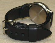 ベルトの素材には質感の良い牛革を使用し、厚さは約4.5mmと存在感抜群!よくある腕時計のレザーベルトに比べて格段の耐久性を備え、上質さもただよっています。同価格帯の量産品の腕時計でも、ここまでのクオリティと存在感のあるレザーベルトを使用しているものは数少ないと思います。