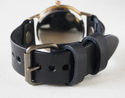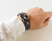 | 黒文字盤に、白い数字とスモールセコンドがシンプルにデザインされた、渡辺工房さんの新作。分刻みのメモリや大きな針で見やすく、渡辺工房さんのオリジナル性を生かした、実用的なアイテムになっています。 独特のあたたかい風合いを持つ真鍮ケースと、相反するクールなモノトーンの文字盤が違和感なくマッチ。オン・オフ問わずお使いいただけます。 |
