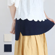 重ね着風にあえて出すことで、タイトなジーンズなどを履くときに腹巻を中に押し込んだり、お手洗いの際にもたつきを調整したりすることもなくストレスがありません。