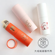 やさしい線とあたたかな色づかいが、小さな筒の中にほっとする空気を運んでくれます。