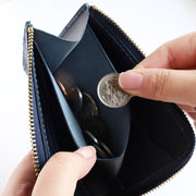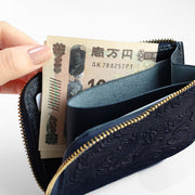 | 薬品を一切使用していない天然の大和藍で染められた 手のひらサイズのラウンドファスナー財布 |