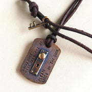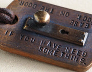 銅でできたプレート状のタグネックレス。デザインは、小さな鍵穴のついたドアノブです。ノブの部分は真鍮素材で、異素材を組み合わせることで存在感のあるペンダントトップに仕上がっています。