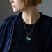 土台となる素材はチェーン、蝶のシルエットラインと裏面すべてシルバー925で、ロジウムメッキ加工というシルバーのさびを防ぐ加工が施されており、長くシルバーの美しさが保たれます。ブルーの翅との対比も美しいです。