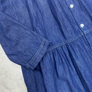 ステンカラー風な可愛い襟、腰の切り替えとギャザーがワンポイント。