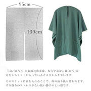 一枚布を肩にかけて「羽織る」だけなので袖口に手を通す必要が無く、ごわつくトップスやジャケットの上からでも着やすくなっています。